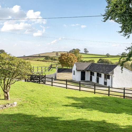 Attached to the cottage is a double garage with two pairs of wooden doors, approached along a sweeping gravel driveway providing additional parking. The gardens feature an abundance of mature shrubs which extend to the front, side and rear, within which is a useful storage shed with original toilet! The property overlooks its gardens and the detached three box stable building. Beyond this is a paddock of around 3.6 acres within which is a 40m x 30m sand school.