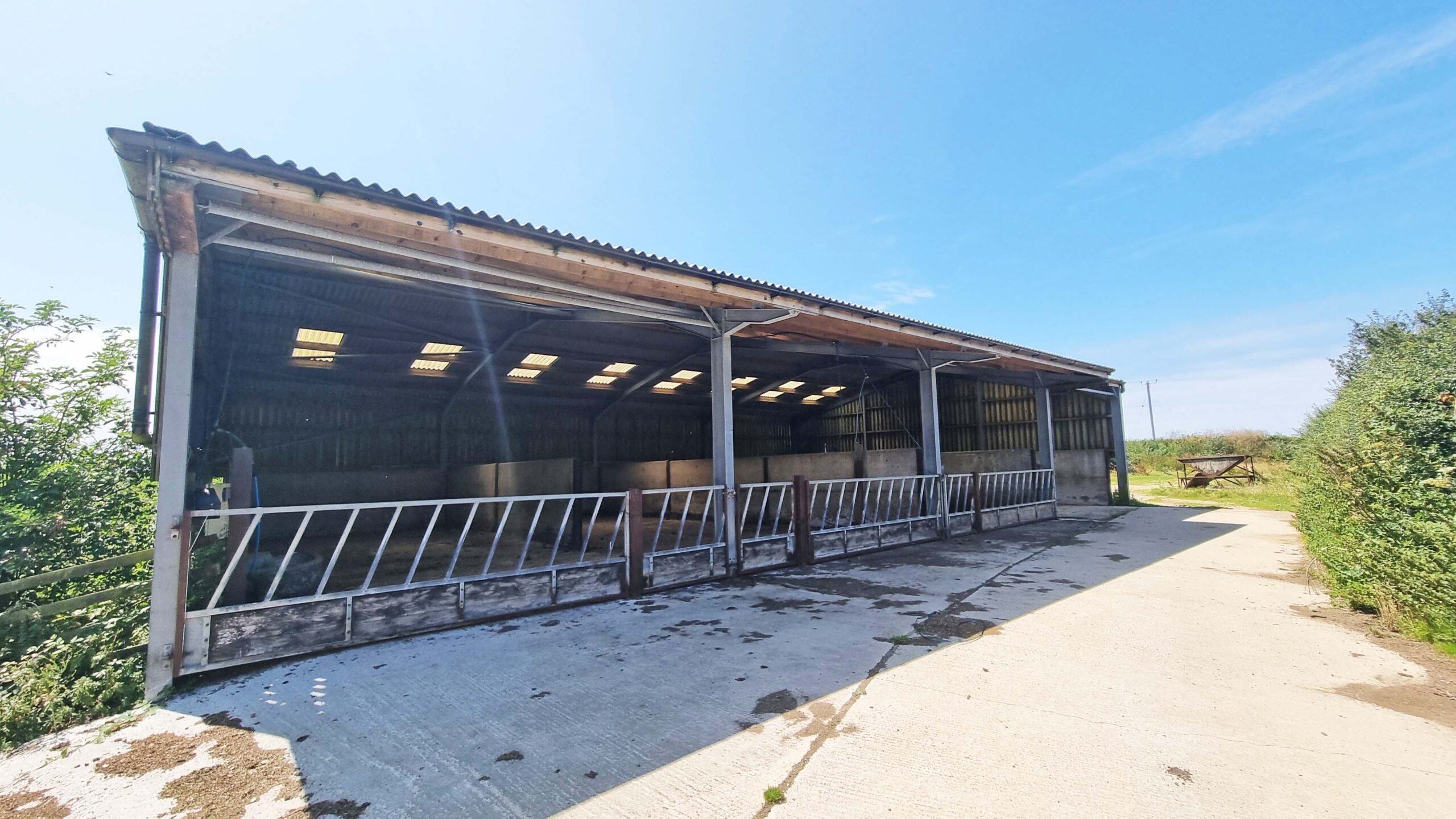 5. Open fronted Livestock Shed (25.6m x 15.2m) four bays, concrete floor and feed barrier.